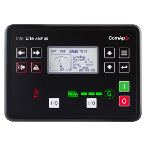 The InteliLite NT AMF 25 is a compact, intelligent controller designed for single genset applications operating in standby or prime power modes. It automates mains failure detection and generator startup, offering full monitoring, protection, and remote control capabilities.
