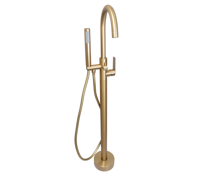 Round Free Standing Bath Mixer Tap with H/S | Silk Brass